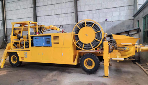 3) 速凝劑添加系統(tǒng)采用軟管泵,流量大、壽命長、可靠性好??筛鶕?jù)需要調(diào)節(jié)比例,外加劑的摻量和混凝土泵送輸量均可通過工控屏或遙控器實時監(jiān)控和調(diào)節(jié)。